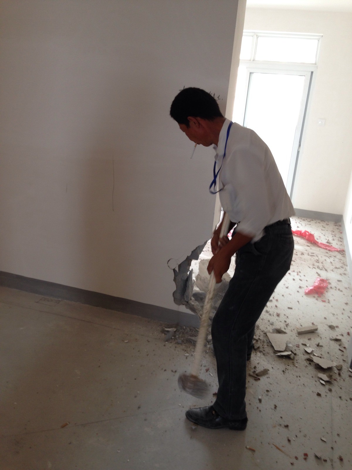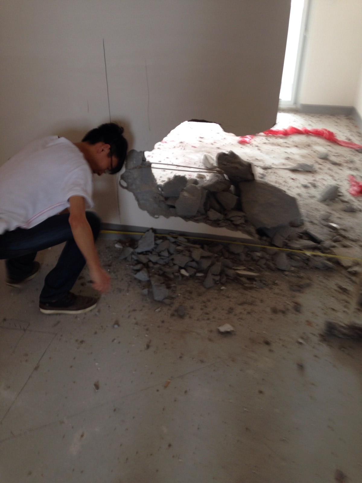 先把地漏口封住 防止后期 敲墙 石子掉进去